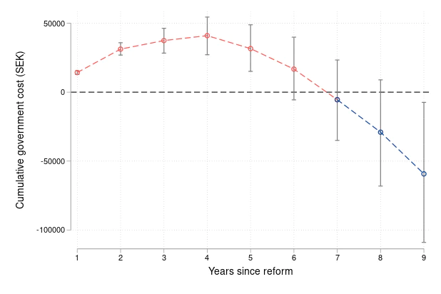 Abstract: This paper examines how subsidies for formal elder (long-term) care services impact the economic and health outcomes of both seniors and their adult children, who often function as informal caregivers to their old-age parents. We exploit a reform in Sweden in 2002 lowering the fee for elder care services by 40% on average across two-thirds of Sweden’s municipalities. Using new data on these fees, combined with administrative data in a difference-in-differences design, we find that increases in the take-up of formal elder care go along with both reductions in hospitalizations among affected seniors and increases in the labor supply of their adult children. Seniors benefit from significant improvements in morbidity, due to fewer hospitalizations for conditions preventable or treatable outside of the hospital. At the same time, adult children increase their annual earnings, which suggests a trade-off between informal caregiving and working depending on the price of formal care. We show that these effects are persistent as adult children keep working in less flexible, but higher-paying jobs, also after the parental care responsibilities have ended. To assess the welfare implications, we build a stylized model that incorporates formal and informal caregiving. We show that the implicit optimal subsidy balances the value created from insuring parents against substantial permanent health shocks and the costs on the children of raising taxes to finance the subsidy. Combining the theory with the empirical results, we find that subsidizing elder care becomes self-financing within a decade of implementation. This demonstrates that the benefits of improved health management and spillovers on adult children can outweigh the direct costs of subsidizing elder care.